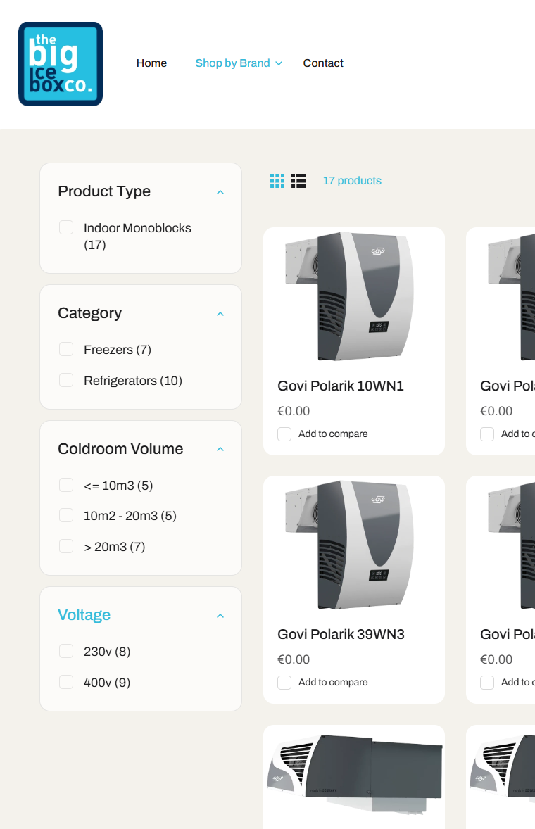 I got a message on LinkedIn saying that my name had been mentioned to a man who wanted an excellent Shopify website. I replied looking for more details and I was immediately intrigued. The company sold everything to do with commercial refrigeration, specialising in cold rooms and high-end freezers. Their existing set-up was a hodge podge of badly developed Shopify solutions that had the classic look and feel of a developer that could put a website together but couldn’t put a plan in place. Instead of serving the UK and IE market from one site there were two separate Shopify installs. Shipping was included in the price of the product. Instead of a shelving product with numerous variants such as width and height there were multiple products – one for each variant. Bundled products were not actually bundled products, but simply new products. On top of all that the website looked like it was dragged out of 2002 kicking and screaming. I couldn’t wait to get started.